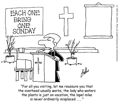 For all you visiting, let me reassure you that the overhead usually works, the lady who waters the plants is just on vacation, the lapel mike is never ordinarily misplaced...