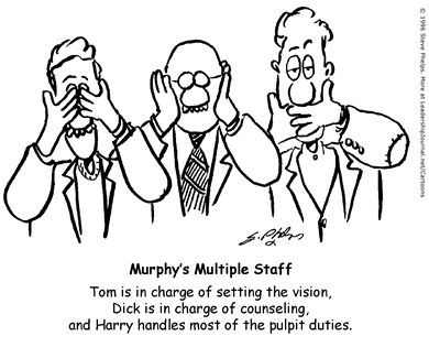 Tom is in charge of setting the vision, Dick is in charge of counseling, and Harry handles most of the pulpit duties.